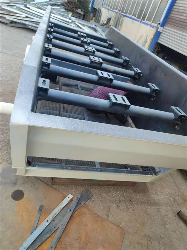 脫水篩是利用振動電機及激振的原理,當兩臺電機作同步反向旋轉時,篩體的運動軌跡為一直線。物料脫水篩分,在篩面上被拋起,同時向前運動,從出料口排除,完成對原料的脫水篩分。用于選礦、尾礦、礦山、冶金、等行業的物料脫水篩分分級。