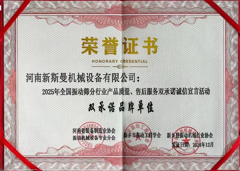 新斯曼榮獲【全國振動(dòng)篩分行業(yè)產(chǎn)品質(zhì)量、售后服務(wù)】大獎(jiǎng),感謝客戶朋友們的支持和信任,我們將一如既往地提供更優(yōu)質(zhì)、更滿意的產(chǎn)品和服務(wù)