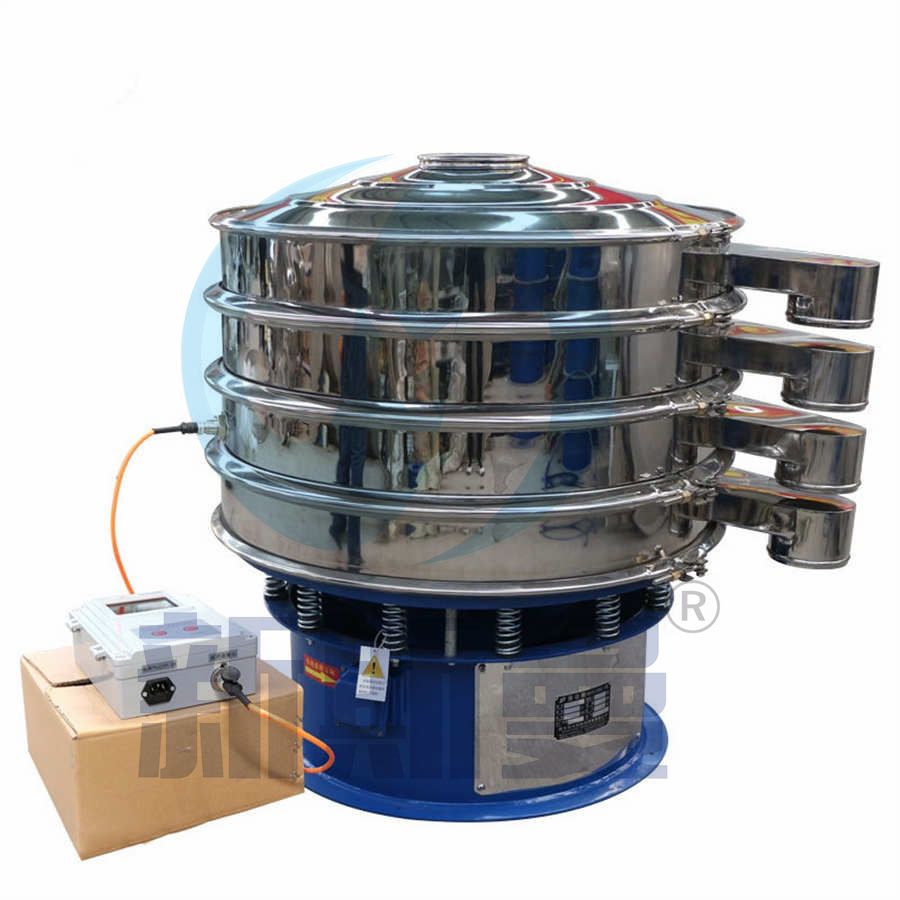 超聲波振動篩是將220V、50Hz或110V、60Hz電能轉化為36KHz的高頻電能,輸入超聲換能器,將其變成36KHz機械振動,產生的功率超聲波使篩網作高頻振動。篩網上的物料在作低頻旋振運動的同時,疊加上超聲振動,既可防止網孔堵塞,又可使篩分機提高產量和質量,從而達到快速篩分和清網的目的,使超微細粉篩分成為易事。該系統在傳統的振動篩基礎上在篩網上引入一個低振幅、高頻率的超聲振動波(機械波),以改變超微細分體的篩分性能。特別適合高附加值精細分體的用戶使用。