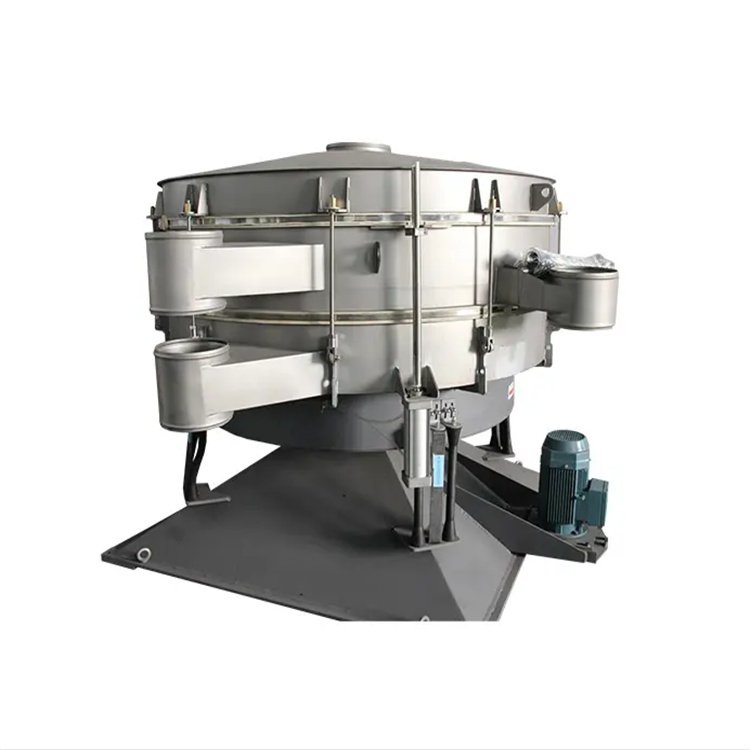 搖擺篩是一種仿人工搖動的低頻旋振篩,其原理是:瞬時運動為沿徑向的位移和以此位移為軸的圓周運動的合成(螺旋運動),即可調節偏心距的激振器產生了非線性三維運動,物料也產生同樣的近似手動作業的運動,從而達到篩分之目的,再配合篩分附件可獲得更加理想的篩分效果,適合于圓形狀、圓柱狀、片狀、乃至 于規則形狀易堵網且需要精細篩分的物料,是為了滿足大產量、高密度篩分用戶而設計的一種篩分設備,與一般圓形篩相比,它的篩分精度、效率、產量、篩網壽命能提高5-10倍,符合所有精細與超細范圍的粉末與微粒狀物料,特別適合難以處理的物料。還可單層或多層篩分,一次可篩分至6個粒度。