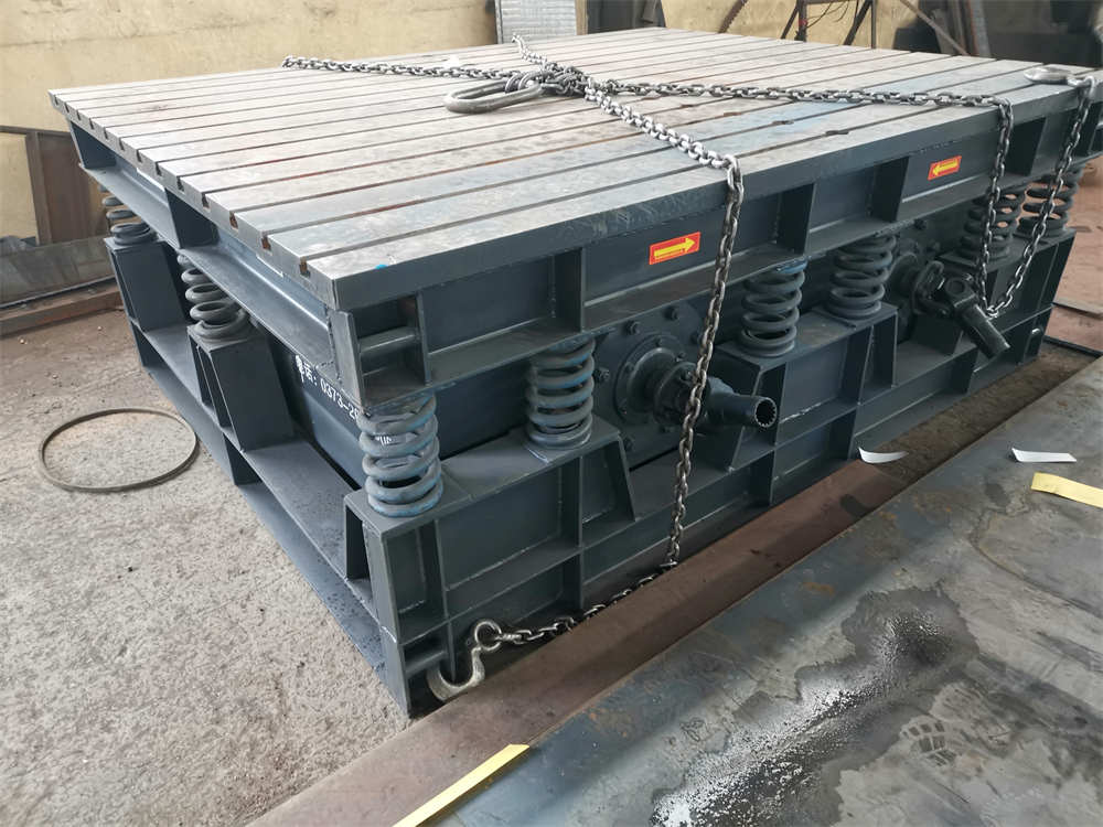 主要包括機(jī)座,平臺(tái)殼體,安裝在殼體內(nèi)的若干個(gè)激振箱,貫穿激振箱的傳動(dòng)軸,激振器,驅(qū)動(dòng)電機(jī),變頻控制裝置,減震彈簧等。