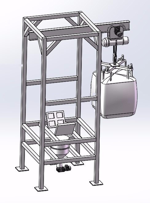 主體結構:卸料站框架支撐結構、噸袋起重裝置、噸袋吊架、噸袋支撐按摩板、袋口控制閥、密封裝置。