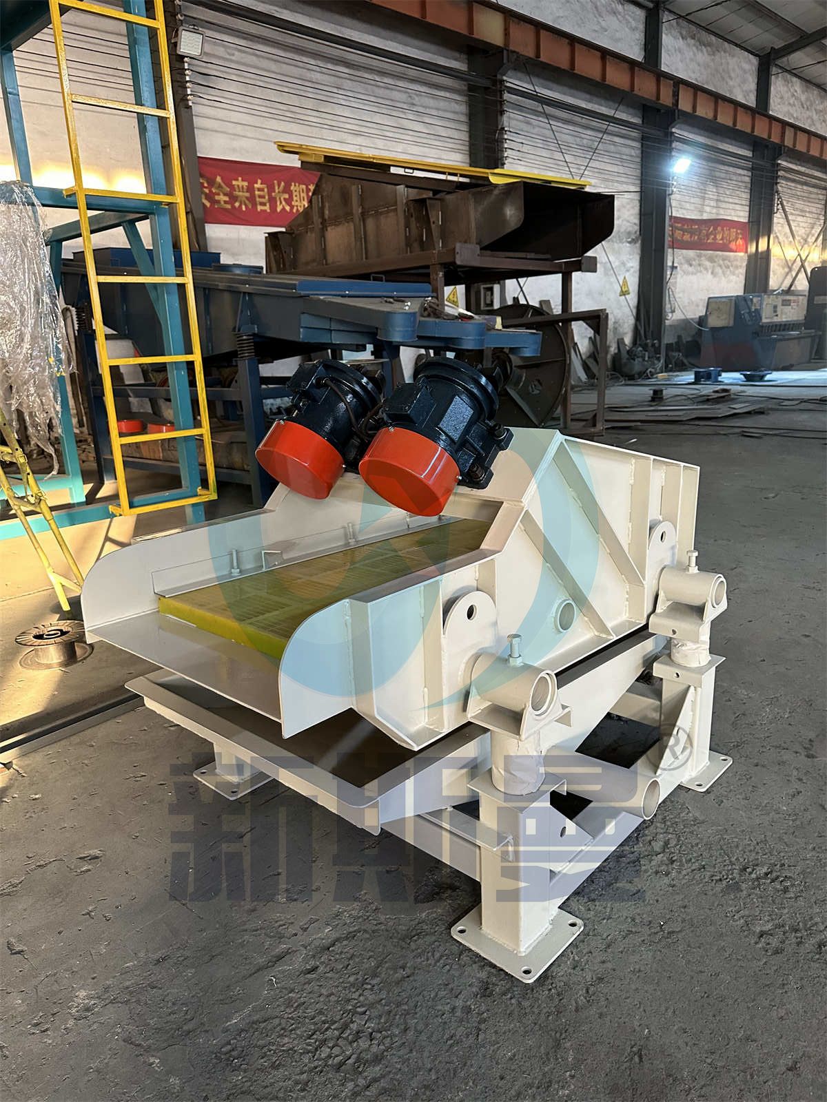 脫水直線振動(dòng)篩是利用振子激振所產(chǎn)生的往復(fù)旋型振動(dòng)而工作的。
