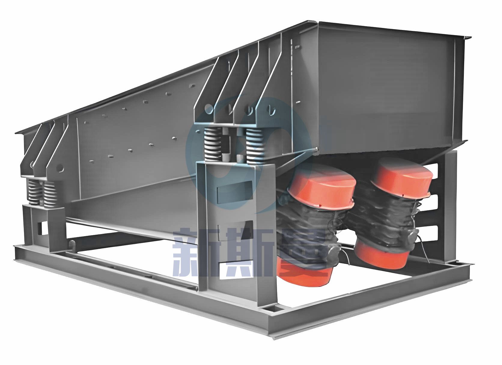 電磁振動給料機是一個較為完整的雙質點定向振動的彈性系統,整個系統工作在低臨界共振狀態,主要利用電磁激振器驅動槽體以一定的傾角做往復振動,使物料沿槽移動。物料置于由主振彈簧支撐的供料槽體上,銜鐵與槽體的主振彈簧連成一體,線圈纏繞在鐵芯上。由于線圈中流過的是經過半波整流后的單向脈動電流,因此,電磁鐵就產生了相應的脈沖電磁力。在交流電的正半周,脈動電流流過線圈,在鐵芯和銜鐵之間產生一脈動電磁吸力,使槽體向后運動,激振器的主彈簧發生變形,儲存勢能;在負半周期內,線圈中無電流通過,電磁力消失,銜鐵在彈簧力的作用下與電磁鐵分開,使料槽向前運動,這樣料槽就以交流電源的頻率,連續地進行往復振動。