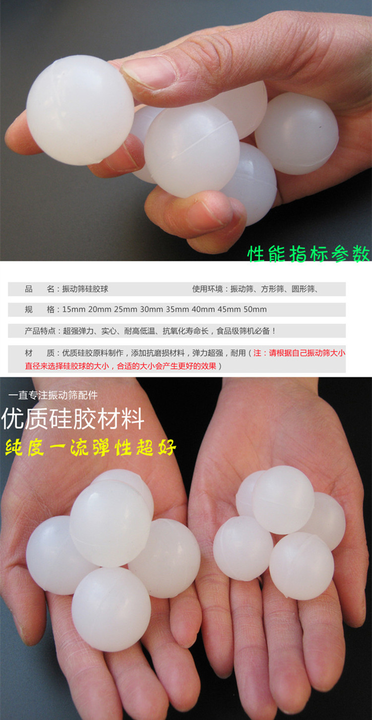 咨詢熱線:15537323577 振動篩彈跳球是振動篩不可缺少的部分,它是在振動篩工作的時候受沖孔板的作用力不停地上下跳動,往復(fù)地敲擊篩網(wǎng),從而實(shí)現(xiàn)清理篩網(wǎng)提高透網(wǎng)率的目的。