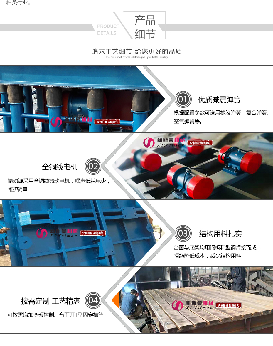◆大功率、大臺面;大功率7.5kw,激振力80KN,可承載10T。
