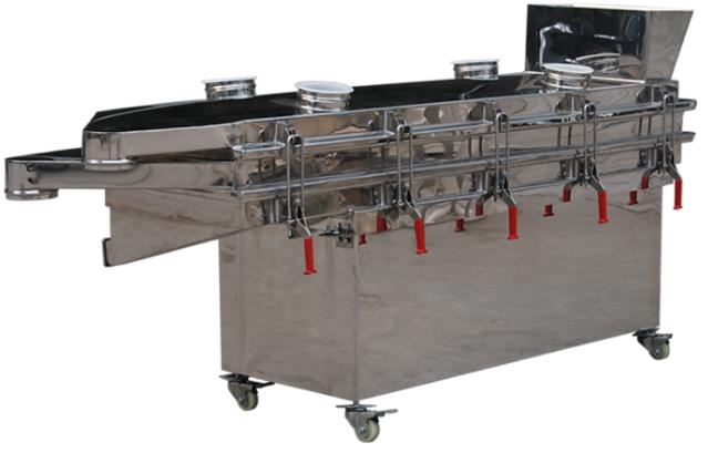 直線振動篩利用振動電機(jī)激振作為振動源,使物料在篩網(wǎng)上被拋起,同時向前作直線運(yùn)動,物料從給料機(jī)均勻地進(jìn)入篩分機(jī)的進(jìn)料口,通過多層篩網(wǎng)產(chǎn)生數(shù)種規(guī)格的篩上物、篩下物、分別從各自的出口排出。具有耗能低、產(chǎn)量高、結(jié)構(gòu)簡單、易維修、全封閉結(jié)構(gòu),無粉塵溢散,自動排料,更適合于流水線作業(yè)。