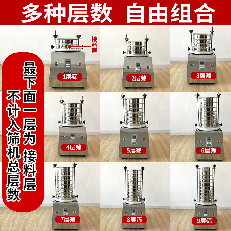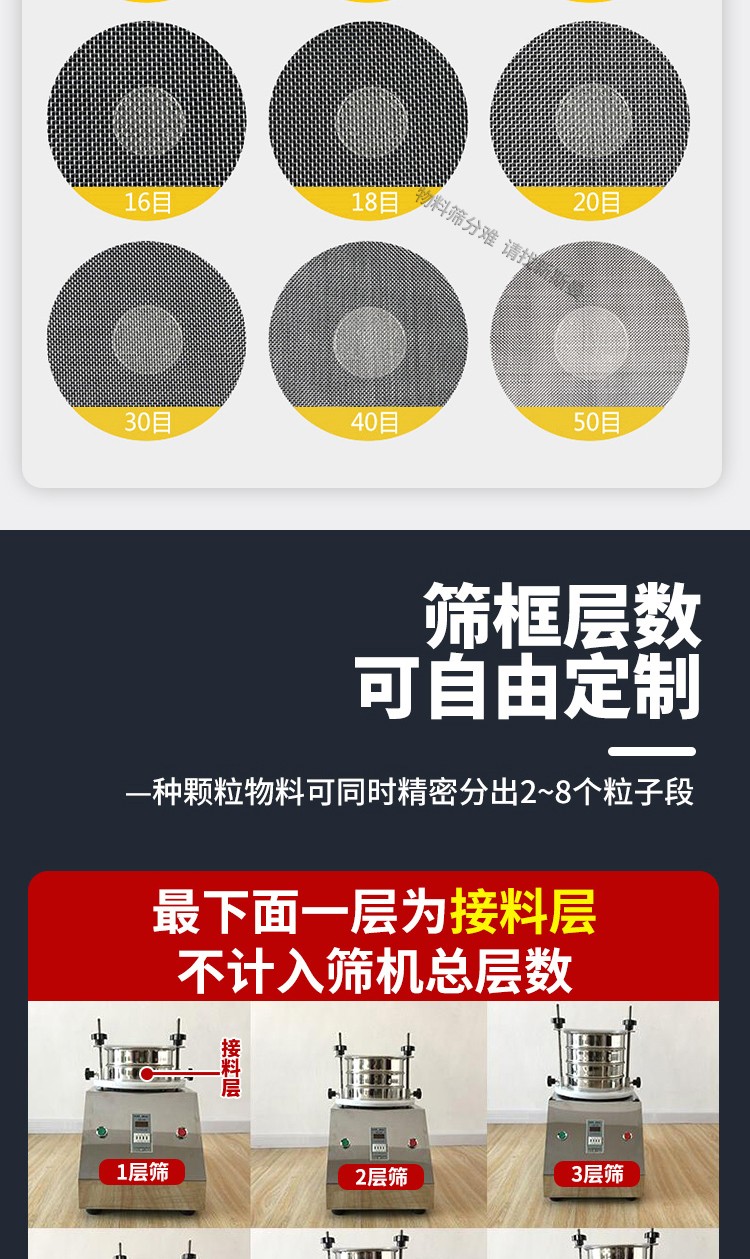 3. 把標準篩框按孔徑從小到大,從下到上依次疊放到篩框底座上。