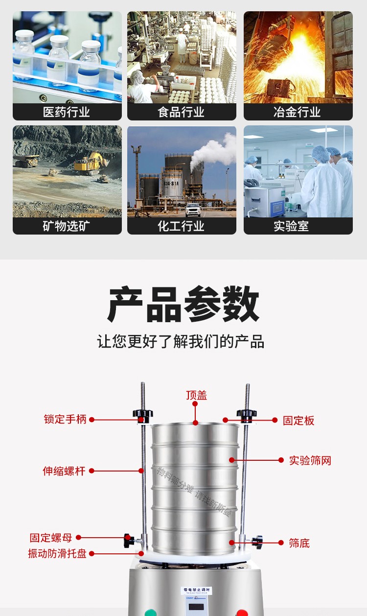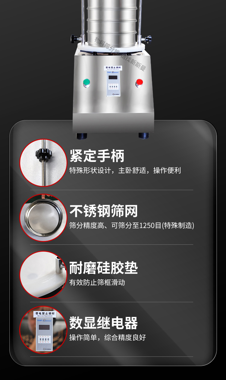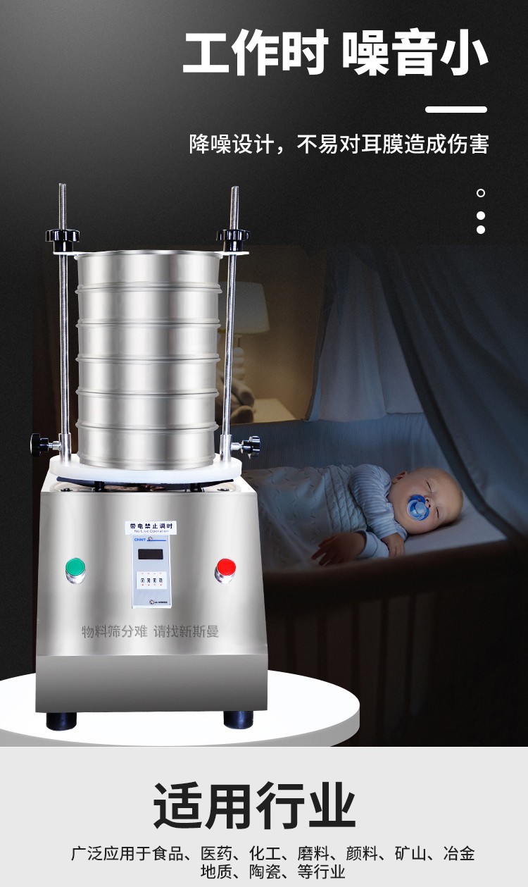 5. 根據物料性質及投料量,在定時器上設定運行時間,然后打開電源開關,標準試驗篩即開始工作。