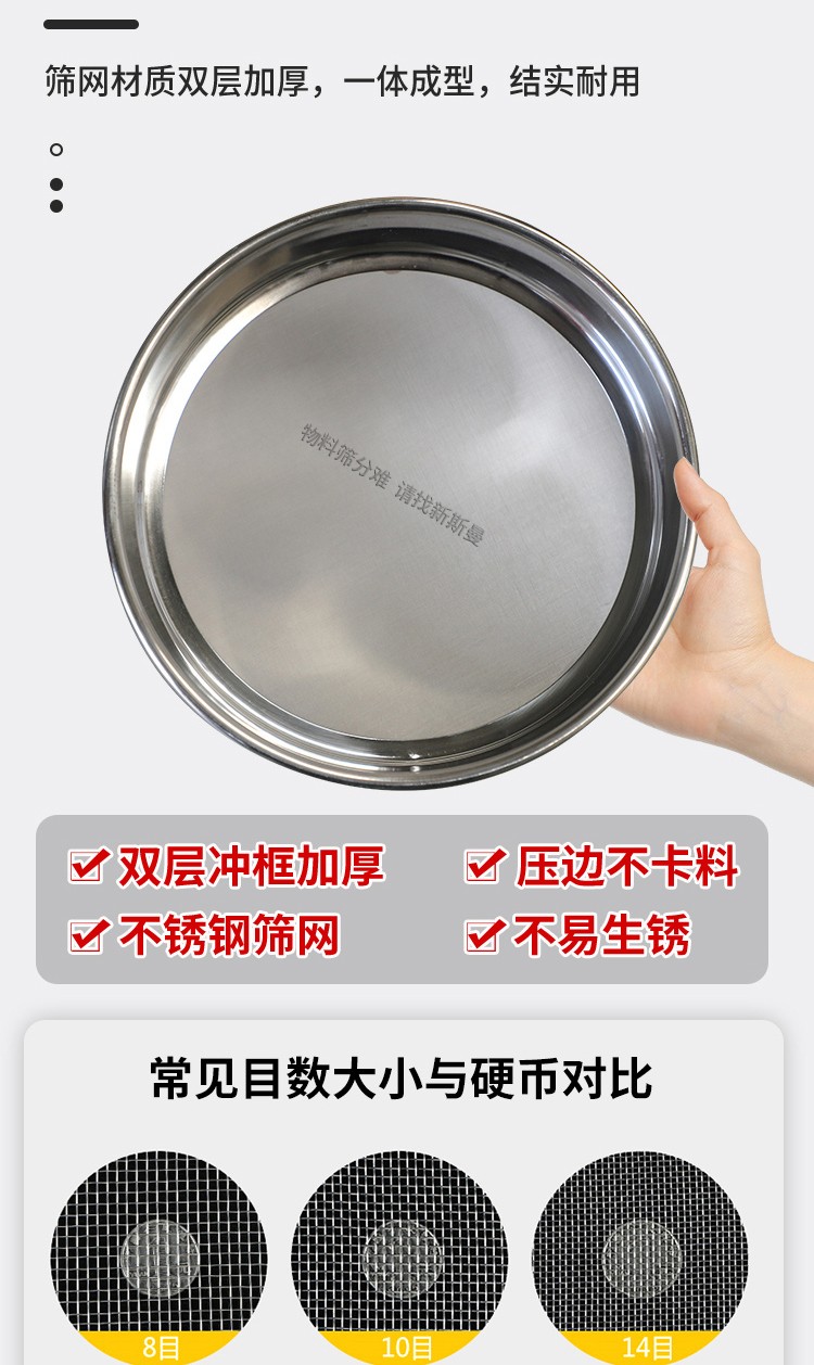 標準檢驗篩(試驗篩)在訂購時請說明所測試物料和篩分粒度,根據您提供的數據來確定篩框大小、層數及篩網尺寸。