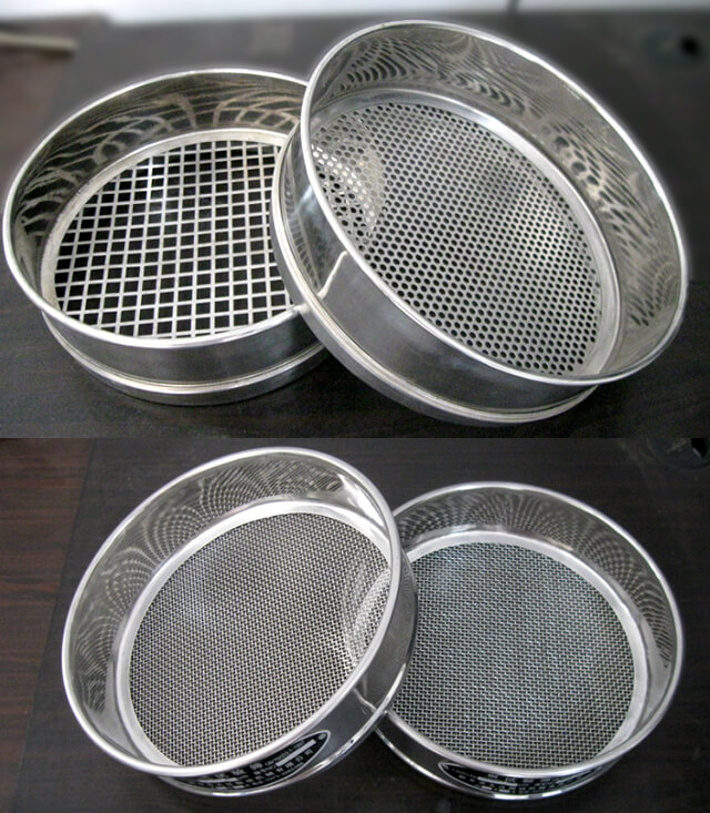 其網孔基本尺寸為金屬絲編織網試驗篩2.36mm-0.020mm篩網材質為黃銅、不銹鋼。金屬沖孔板試驗篩3-20MM篩網材質為不銹鋼。