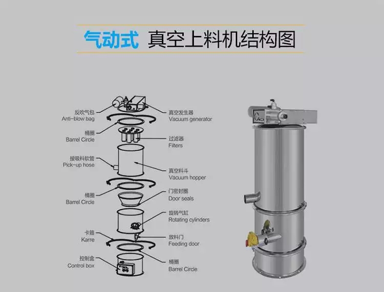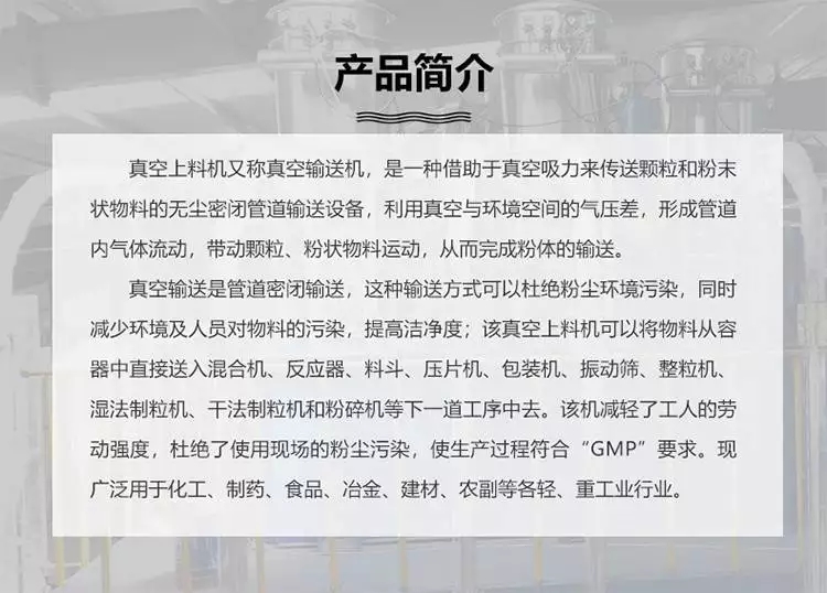 ZKS系列真空上料又稱真空輸送機,是通過氣體產生真空輸送粉體料的設備,是氣體輸送的一種。適用于醫藥、食品、化工、冶金、建材等多個行業,針對各種粉體物料的密閉輸送,提高物料的潔凈度,能滿足不同客戶的多種輸送需要。